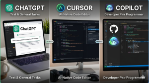 ChatGPT, Cursor, and GitHub Copilot are not competitors for the same job — they are three different types of tools that happen to all involve AI and code. ChatGPT is your tutor. Copilot is your in-editor assistant. Cursor is your AI-powered IDE upgrade.