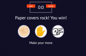 This game is developed using HTML CSS and JavaScript. This game runs on browser. The game features a simple UI design with scoreboard and the three shapes ‘rock’, ‘paper’ and ‘scissor’. After opening the game, you will be presented with the three shapes. It is upto you to choose the shapes. After you choose your move, the game will choose its and will quickly show the result to the scree. eg ‘Scissor beats Paper, You lose!’. The score will then automatically update the score in the scoreboard.